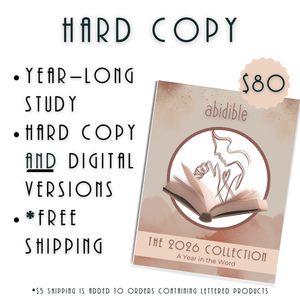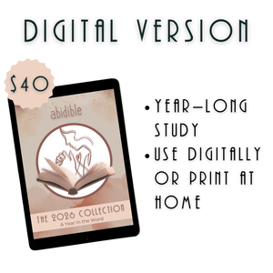 If you’re longing for a year of intentional, deep, soul-steadying Bible study, this is the resource for you. The 2026 Abidible Study Collection gathers all four of next year’s in-depth studies into one beautifully designed volume—over 300 pages life-changing space to do in-depth study. Whether you choose digital or hard copy, this book will guide you through a full year in God’s Word, supported by weekly Abidible Podcast episodes.